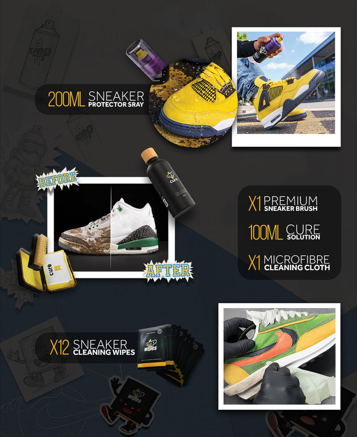 Q. How often should I clean my sneakers with the Cure?It depends on how often you wear them. For everyday wear, we recommend a clean every 2–3 weeks to keep them looking box-fresh. The Cure solution also cleans up to 50 pairs of trainers.