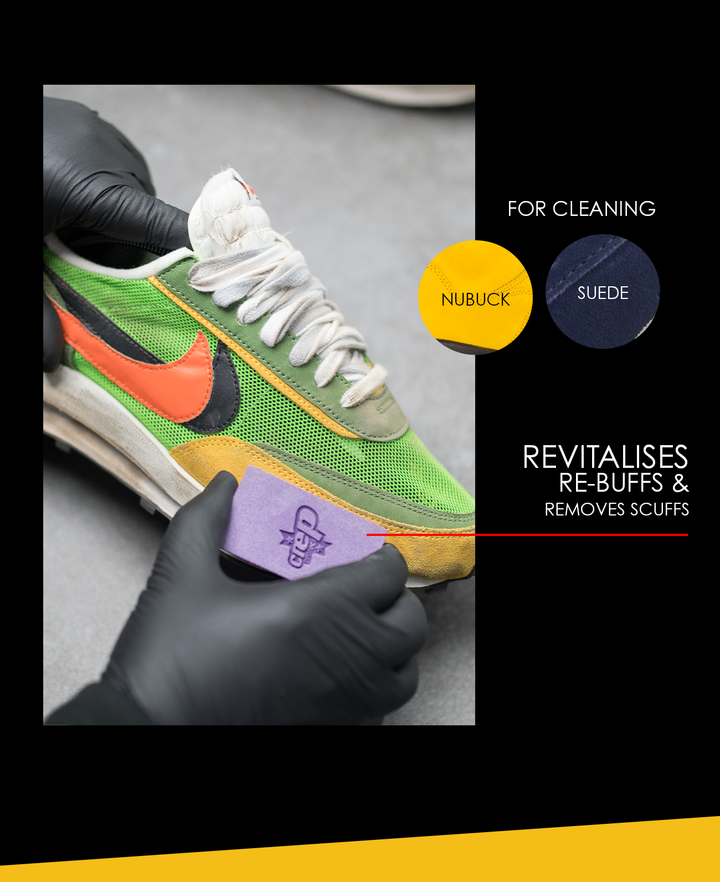 Suede Reviver: Designed to nourish and condition, this innovative care solution restores the original vibrancy and texture of your suede sneakers.
